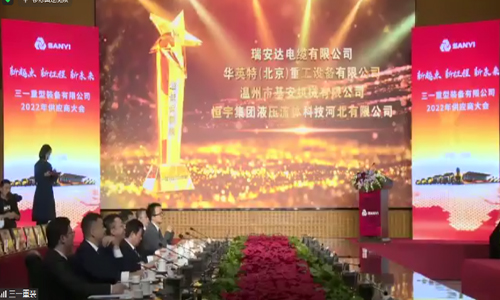 2023年1月6日,“三一集團2022年供應商大會”在三一集團成功舉辦。本次大會以“新起點、新征程、新未來”為主題,近幾百家供應商線上線下參加會議。華英特集團在眾多供應商中再次脫穎而出,榮獲“最佳保供供應商”榮譽。